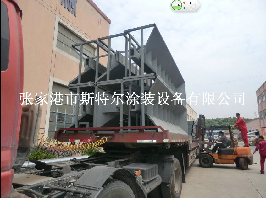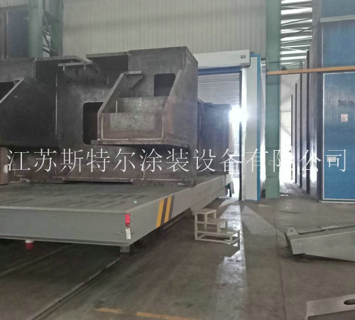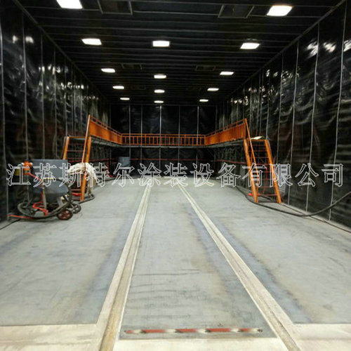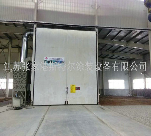 根據客戶要求及工件尺寸,房體工作尺寸設計為18x6x6.5m。本噴砂房體運用了100mm方管做主要層次結構,內層管理結構運用了50方管做內層管理結構作為支撐點,內層管理結構鋪2mm鋼條規格及3mm硫化橡膠板,外邊壁墻運用了50mm厚鋼構夾心板生產制造,外觀設計好看、進行安裝省時、防潮實用。鋼構板規格夾心層為聚苯丁二烯發泡泡沫塑料,與常規化用純鋼條規格創作的